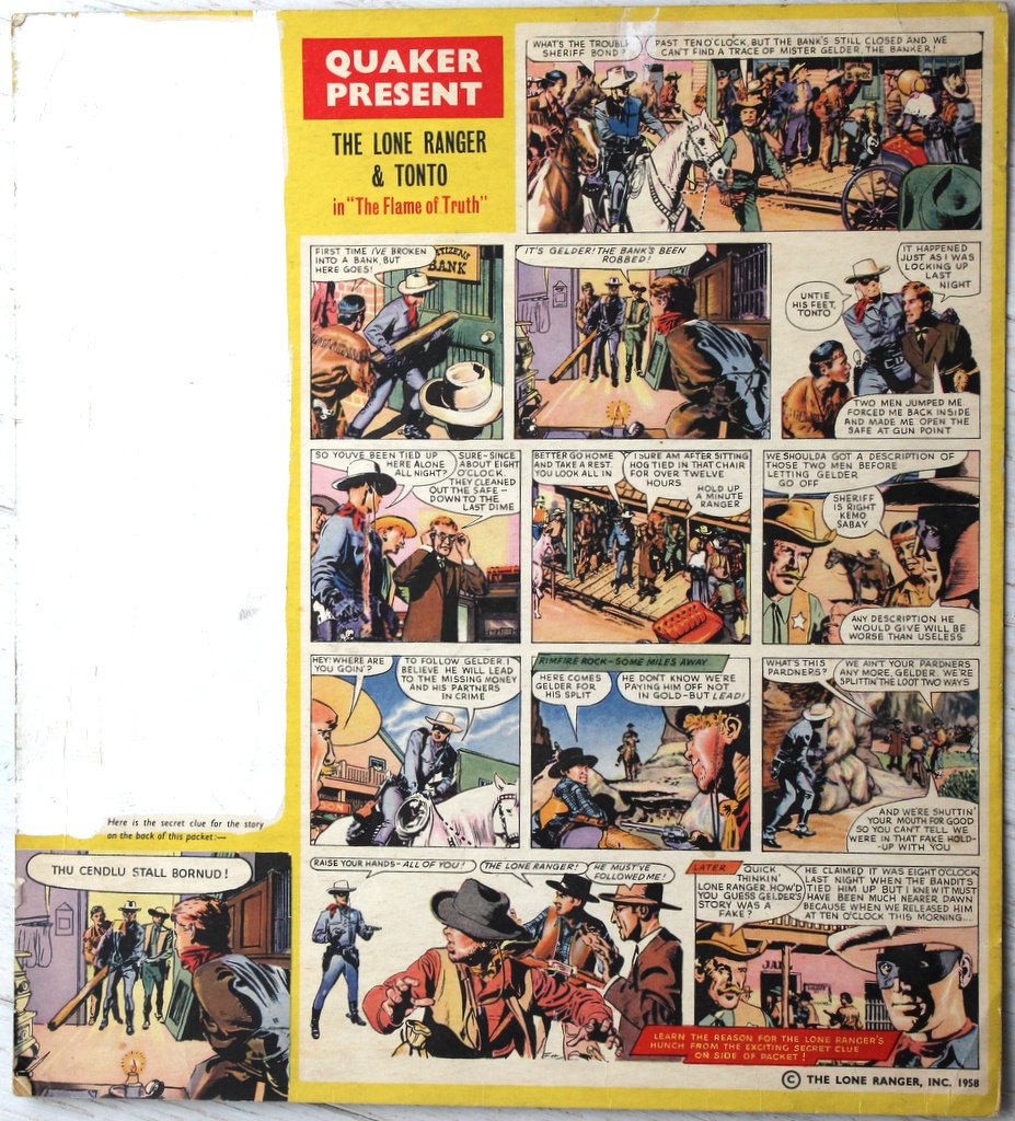The Lone Ranger strips below were drawn for Quaker Oats and were published on the backs of their cereal packets.