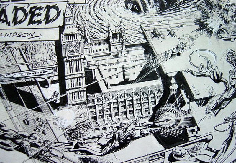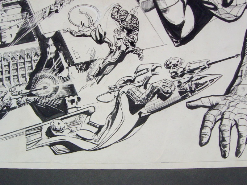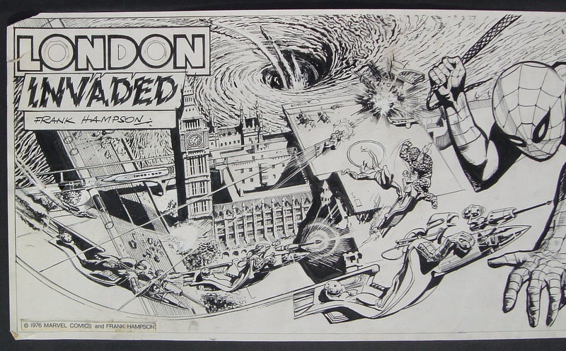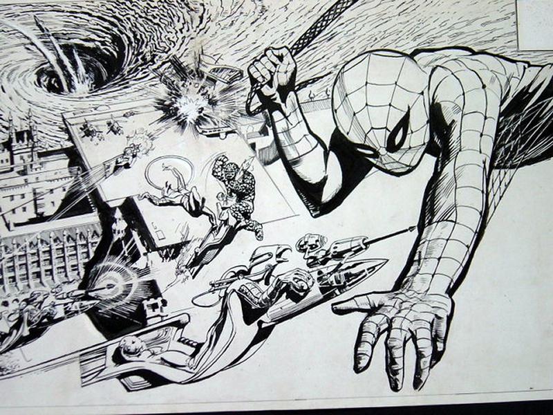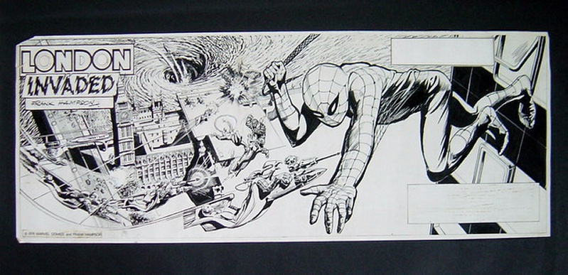 My father was commissioned by Marvel UK to draw centre page spreads for Spiderman. The images shown